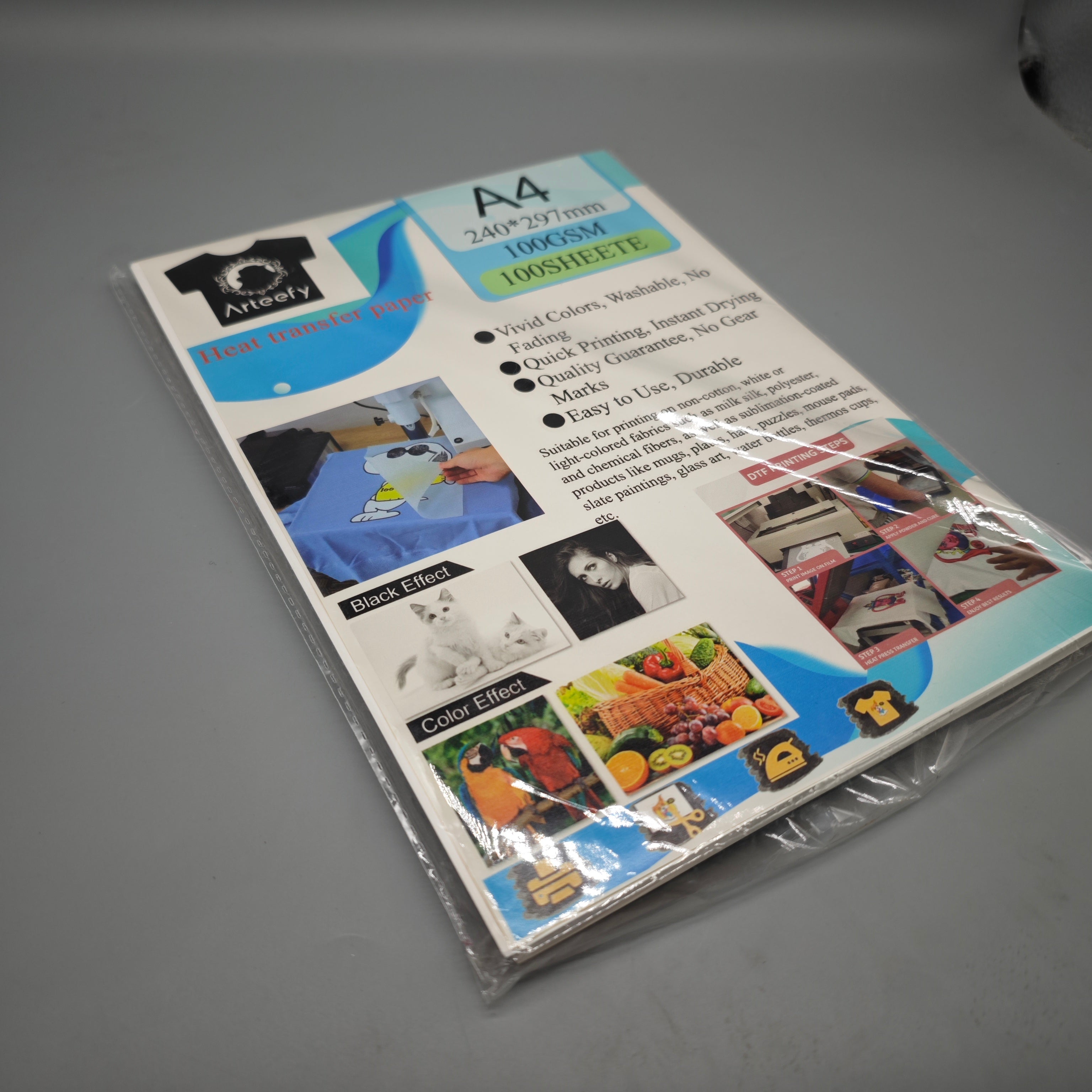 Arteefy Heat Transfer Paper – 100 Sheets, Vibrant Colors, Washable & Fade-Resistant, Quick-Drying, No Gear Marks, 240x297mm for DIY T-Shirt Printing