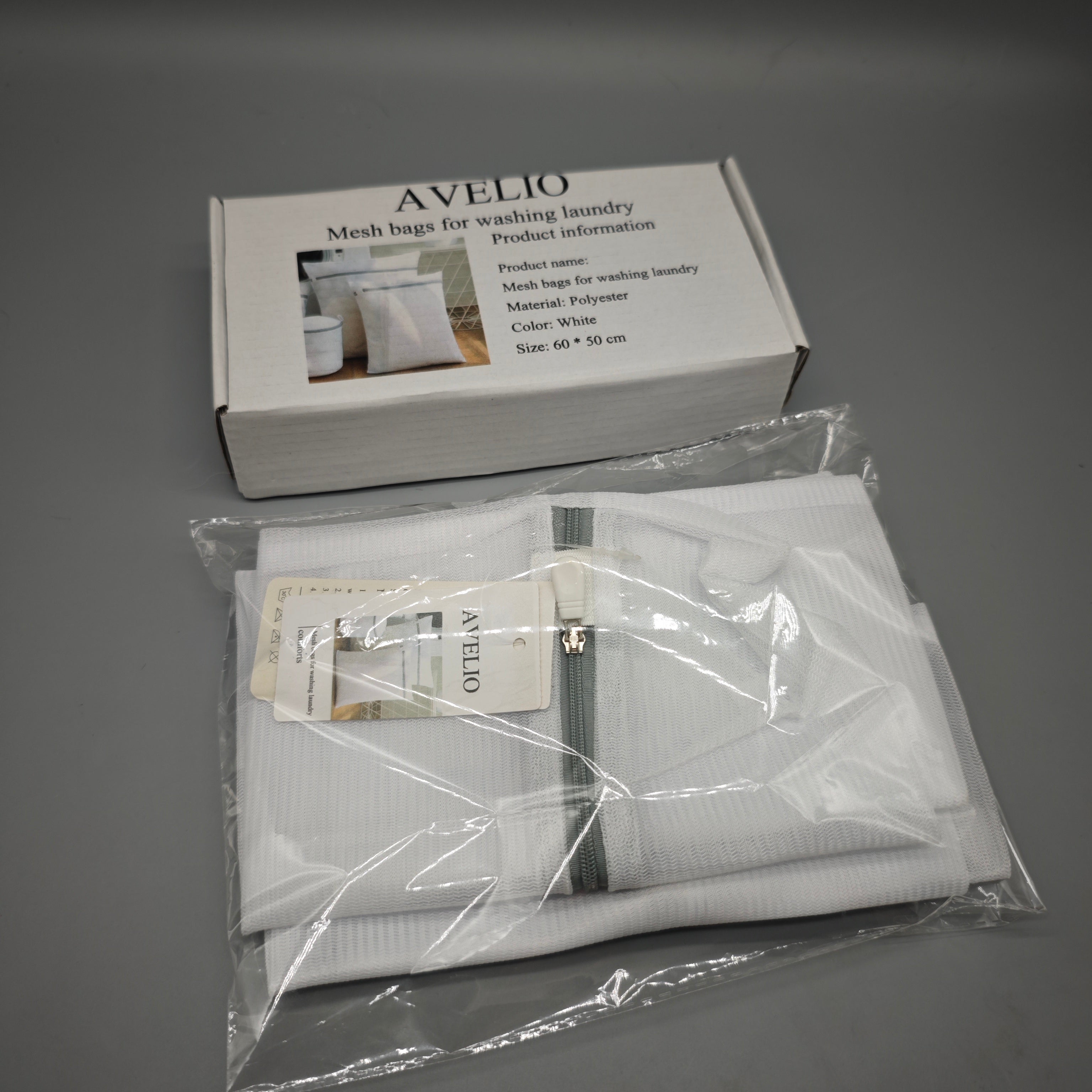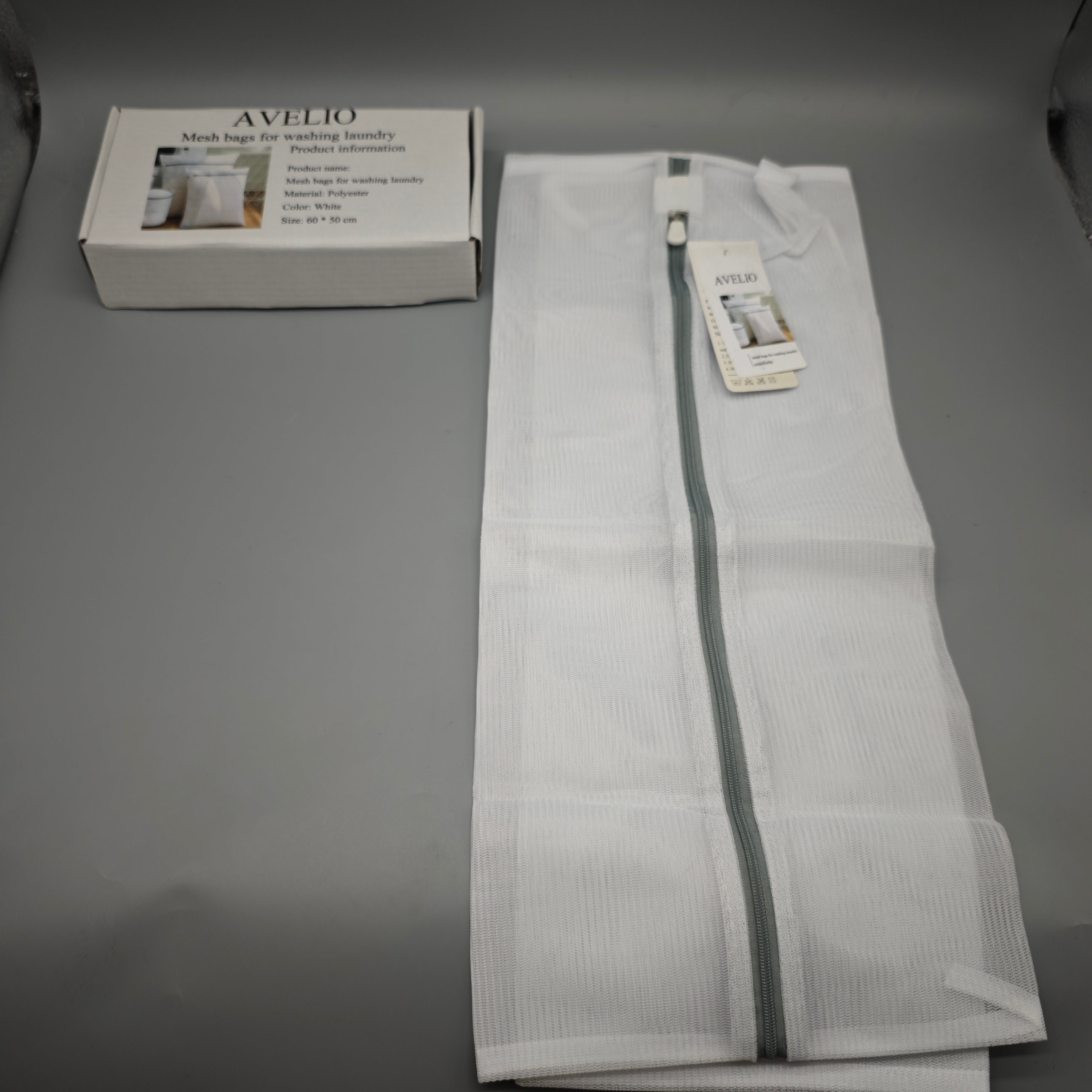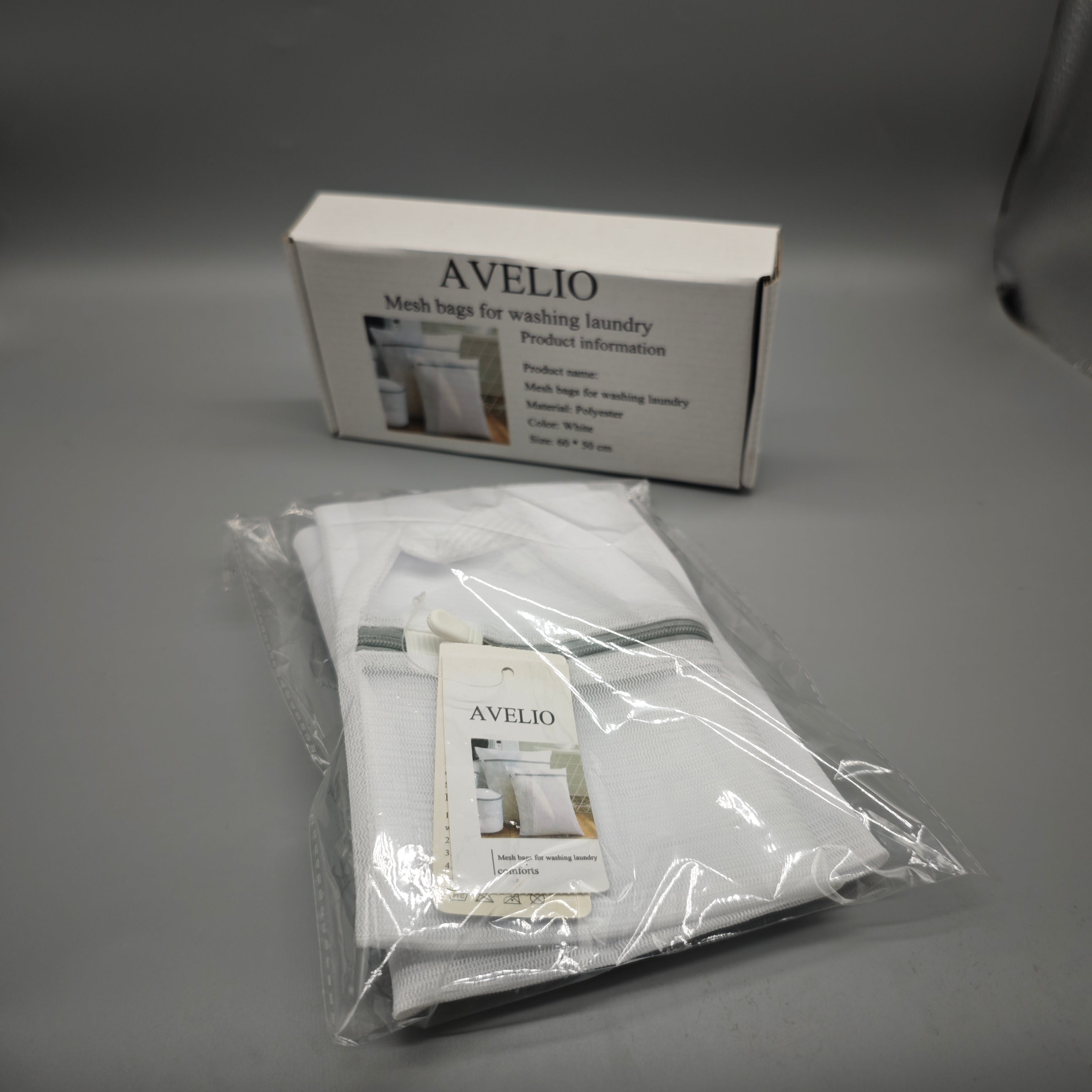 AVELIO Mesh bags for washing laundry – 60x50cm, Durable Polyester, White, Protective Wash Bag for Delicates, Clothes & Lingerie
