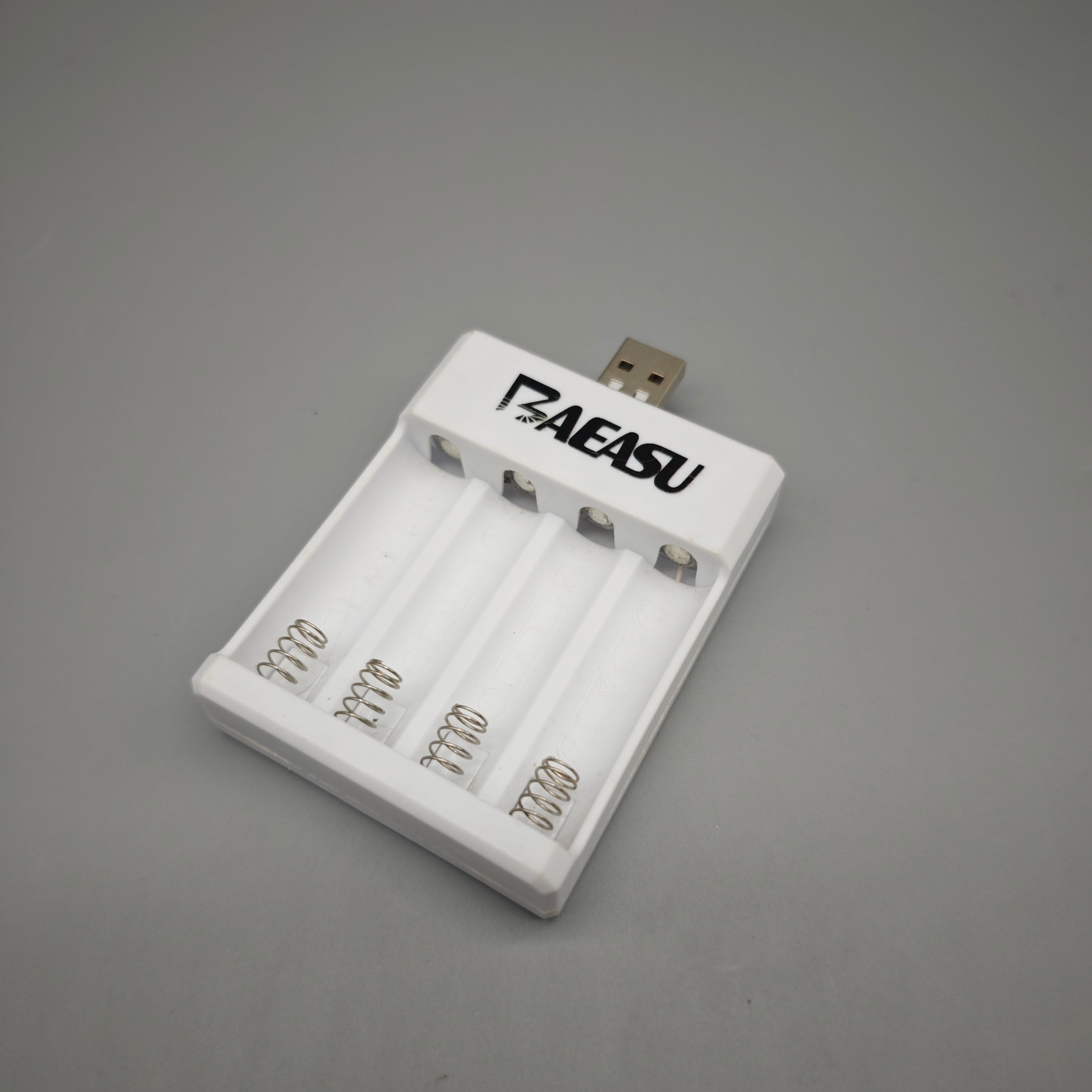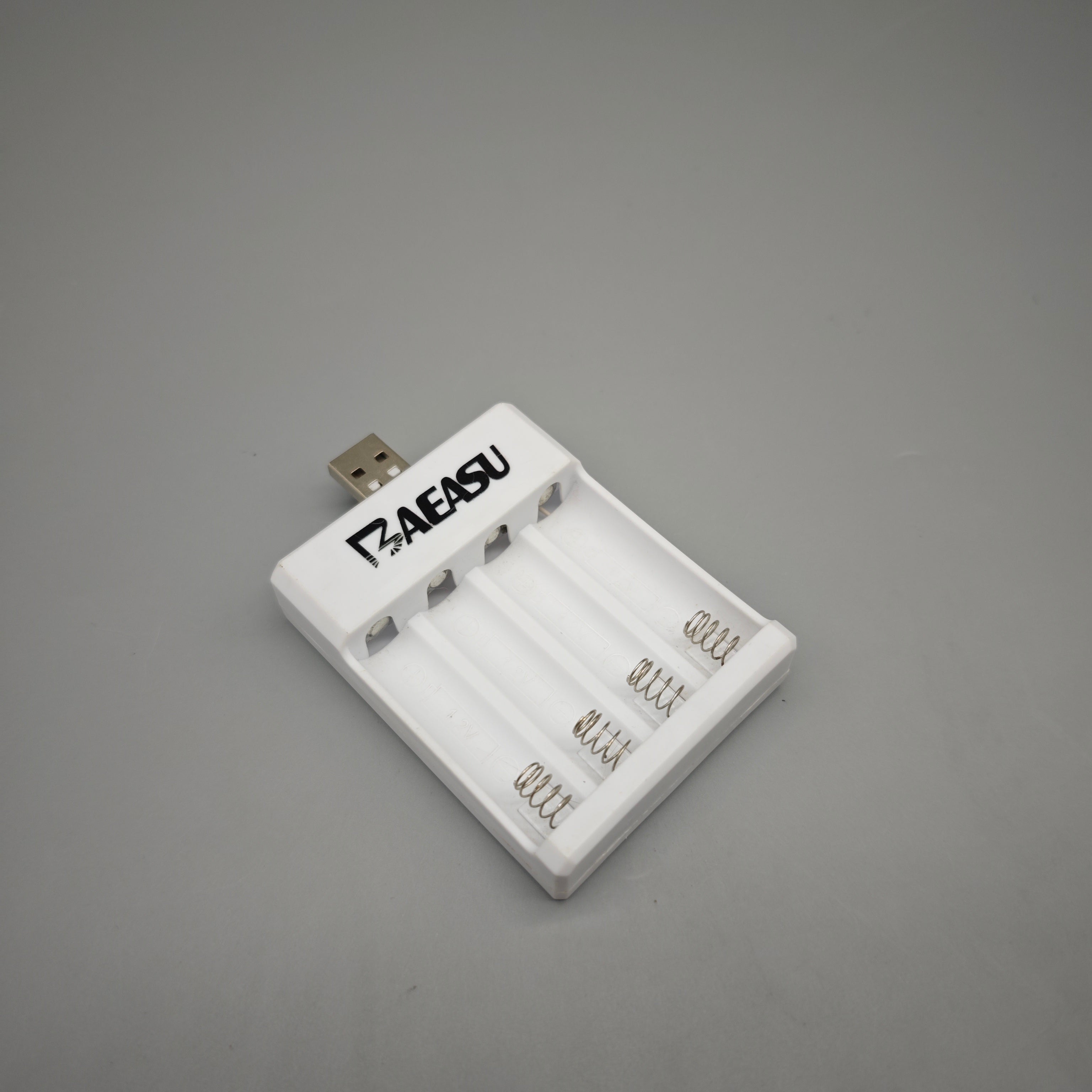 BAEASU Battery Charger – AA & AAA Rechargeable Battery Charging, USB Powered, 1-4 Slot Mixed Charging, Spring-Loaded Battery Bay, Compact 8.3×6.3×1.9cm
