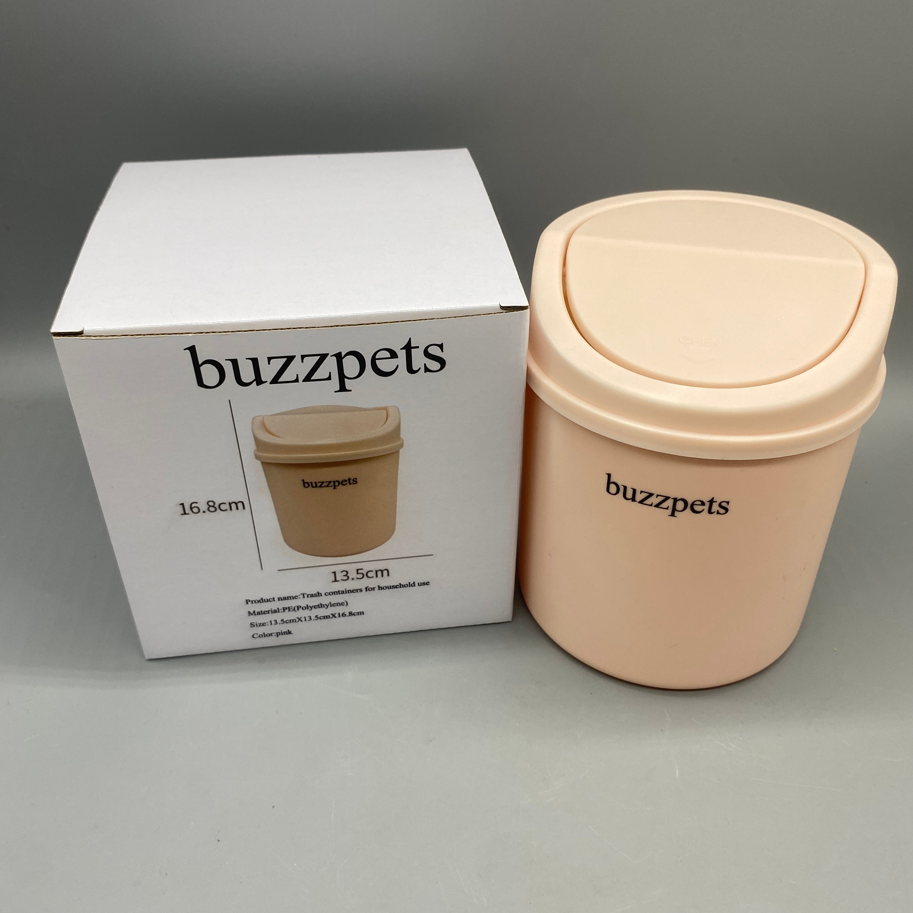buzzpets Trash containers for household use, 13.5x13.5x16.8cm, Pink PE Material, Compact and Durable for Home and Office Use