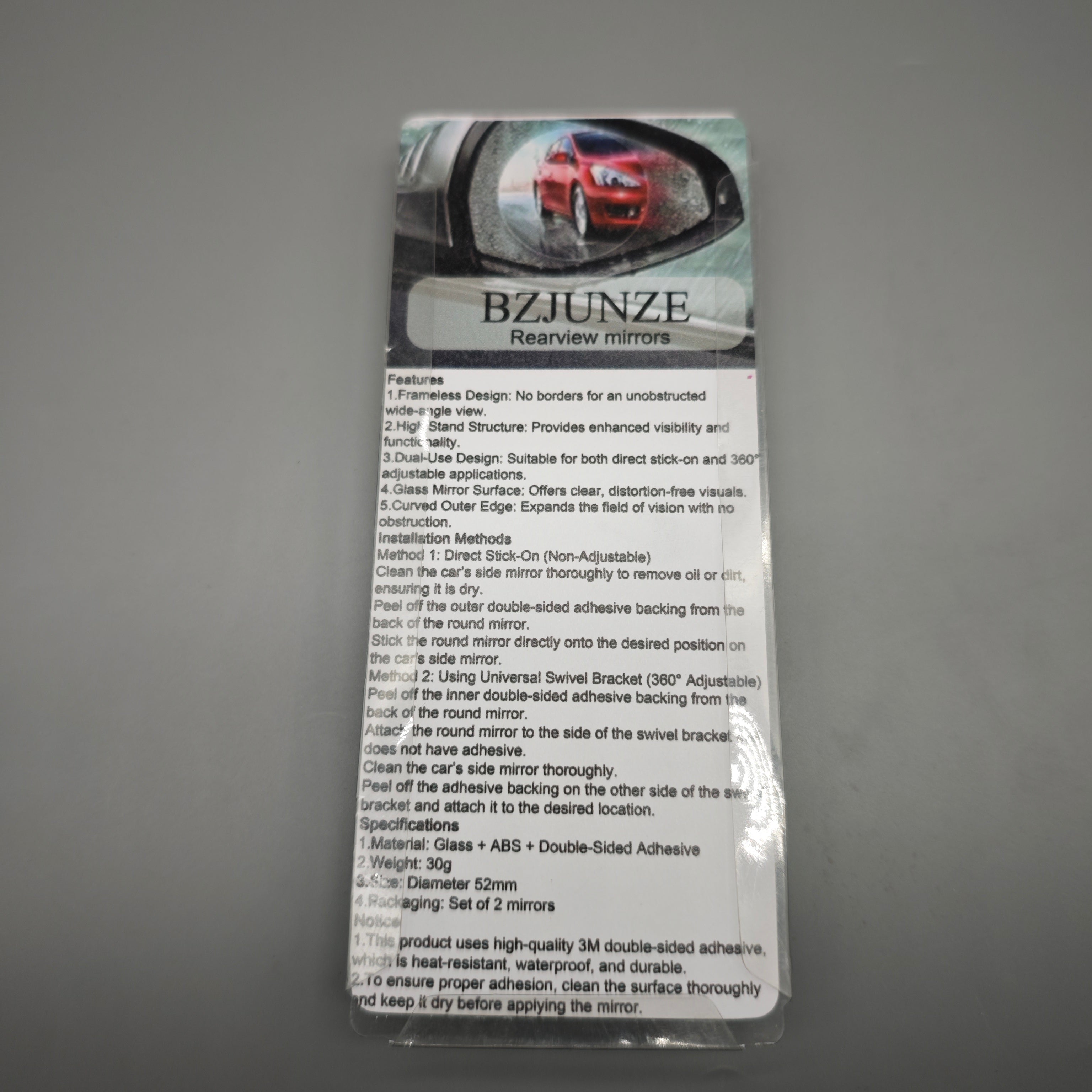 BZJUNZE Rearview Mirrors – 2-Pack, 52mm, Frameless Glass & ABS, Includes Double-Sided Tape for Easy Installation