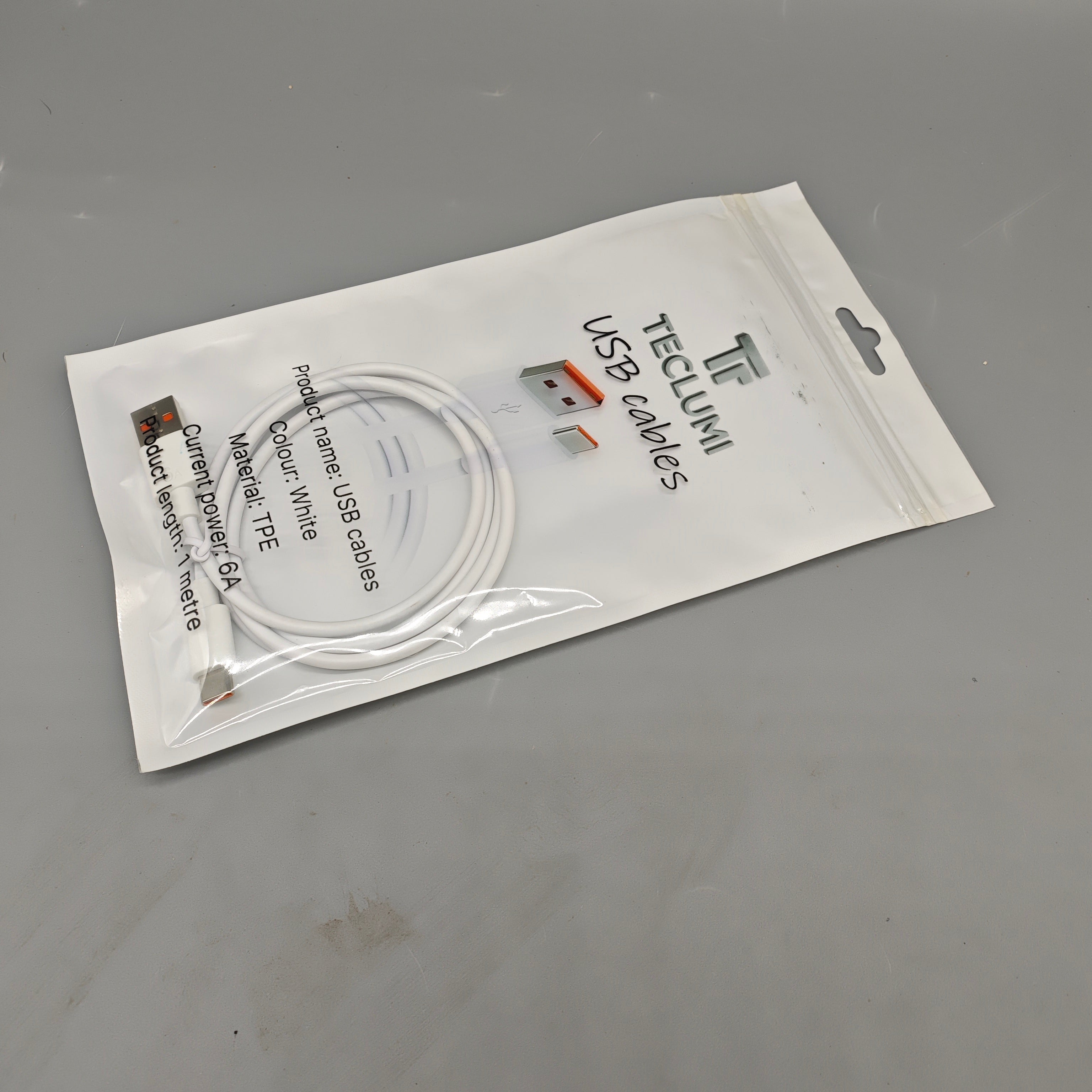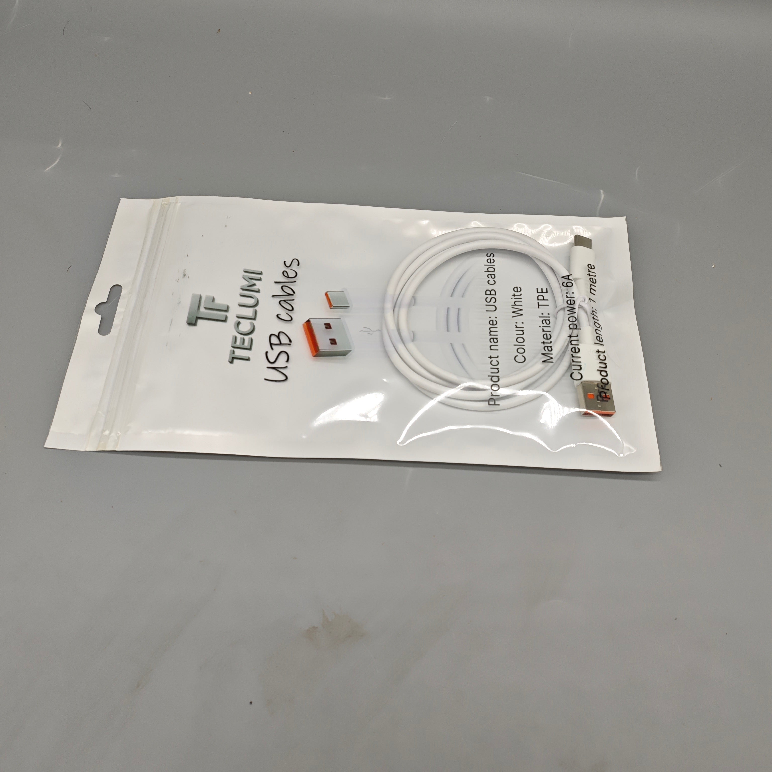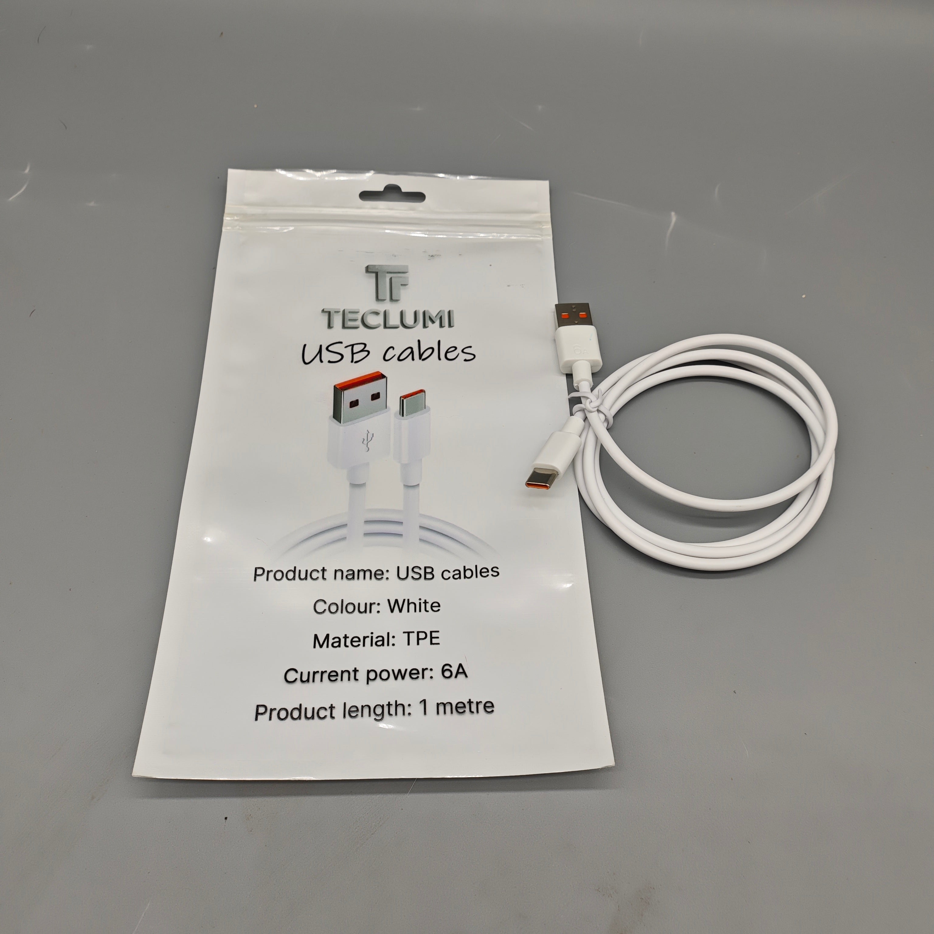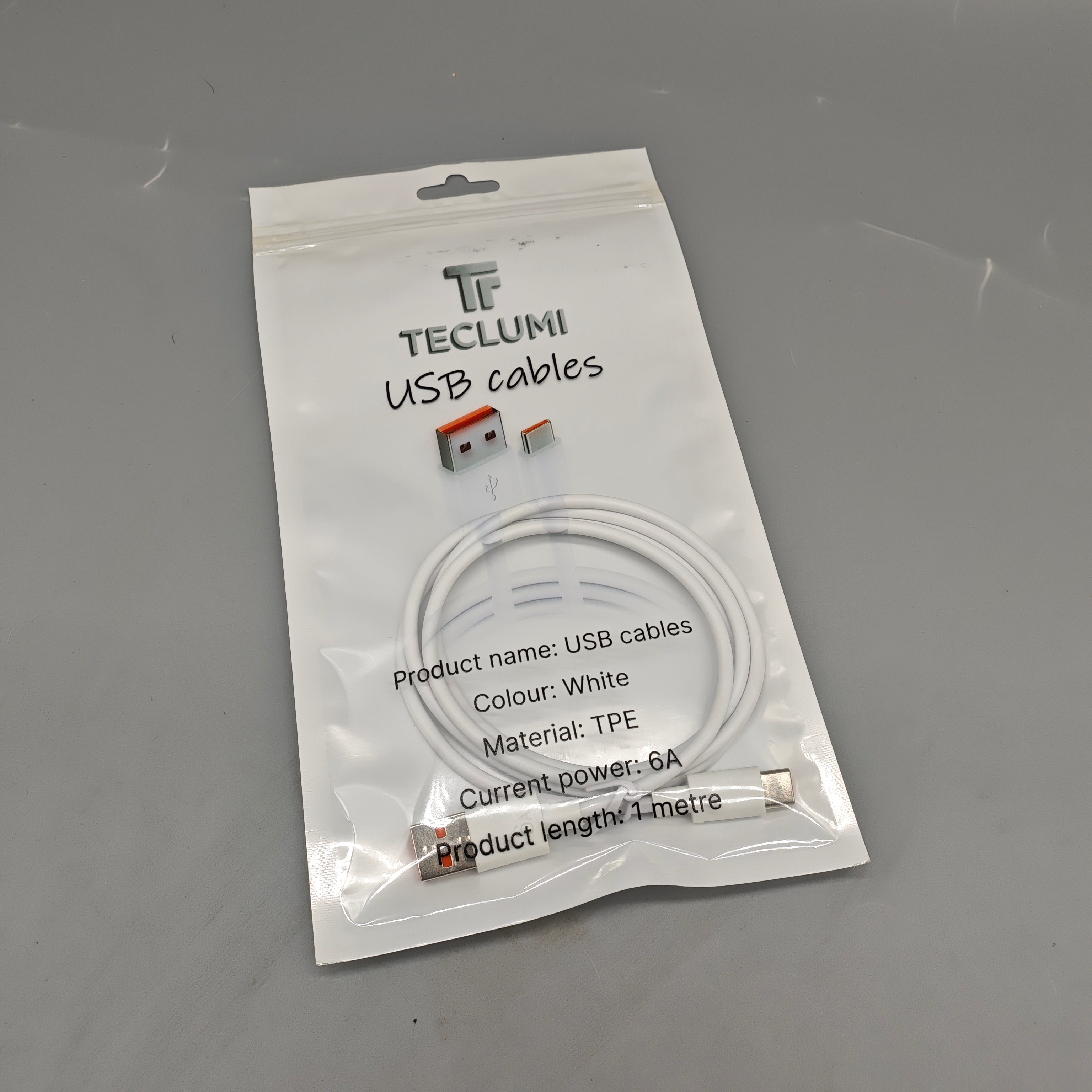 TF TECLUMI USB Cables 6A Fast Charging TPE White 1M Durable Data Cord for Smartphones Tablets