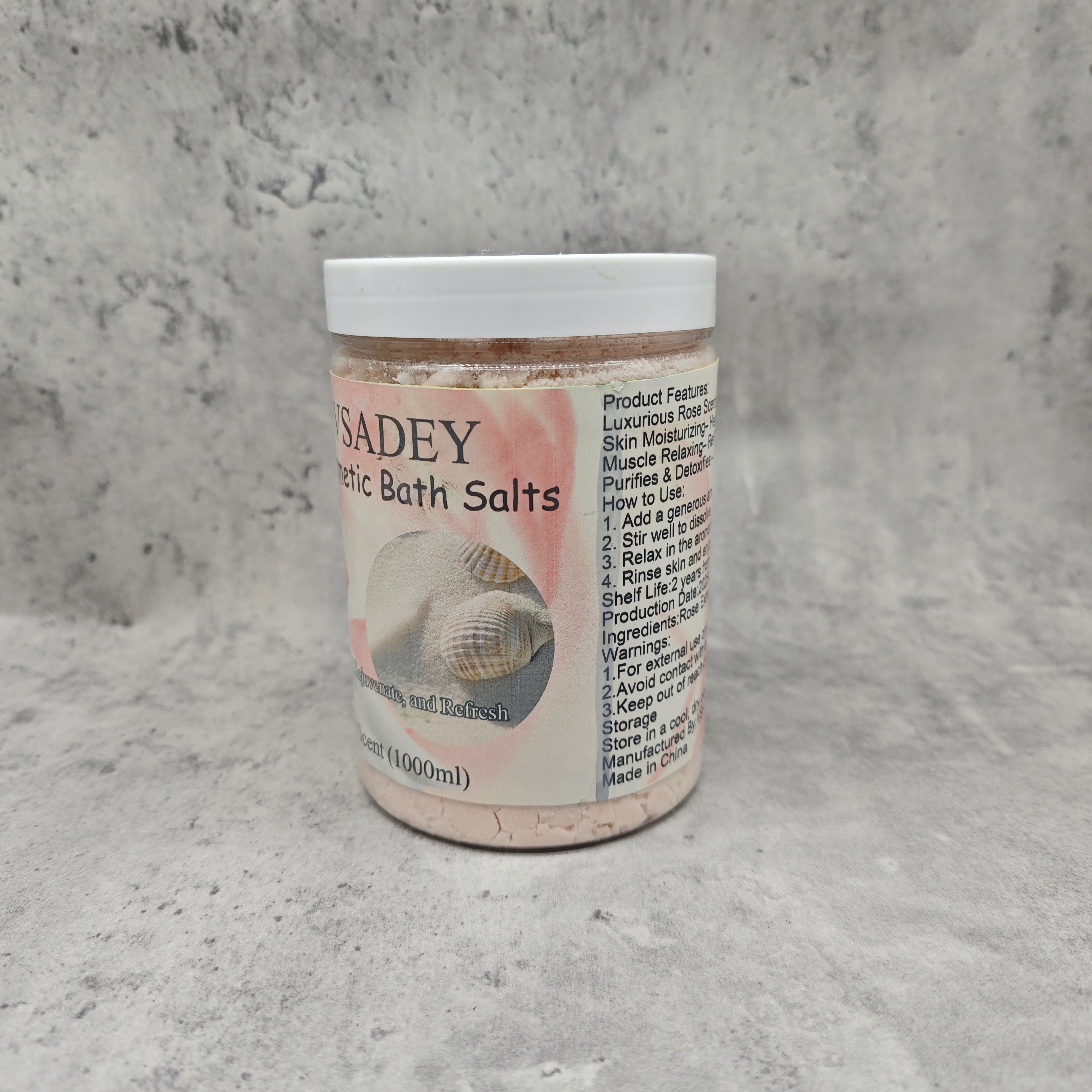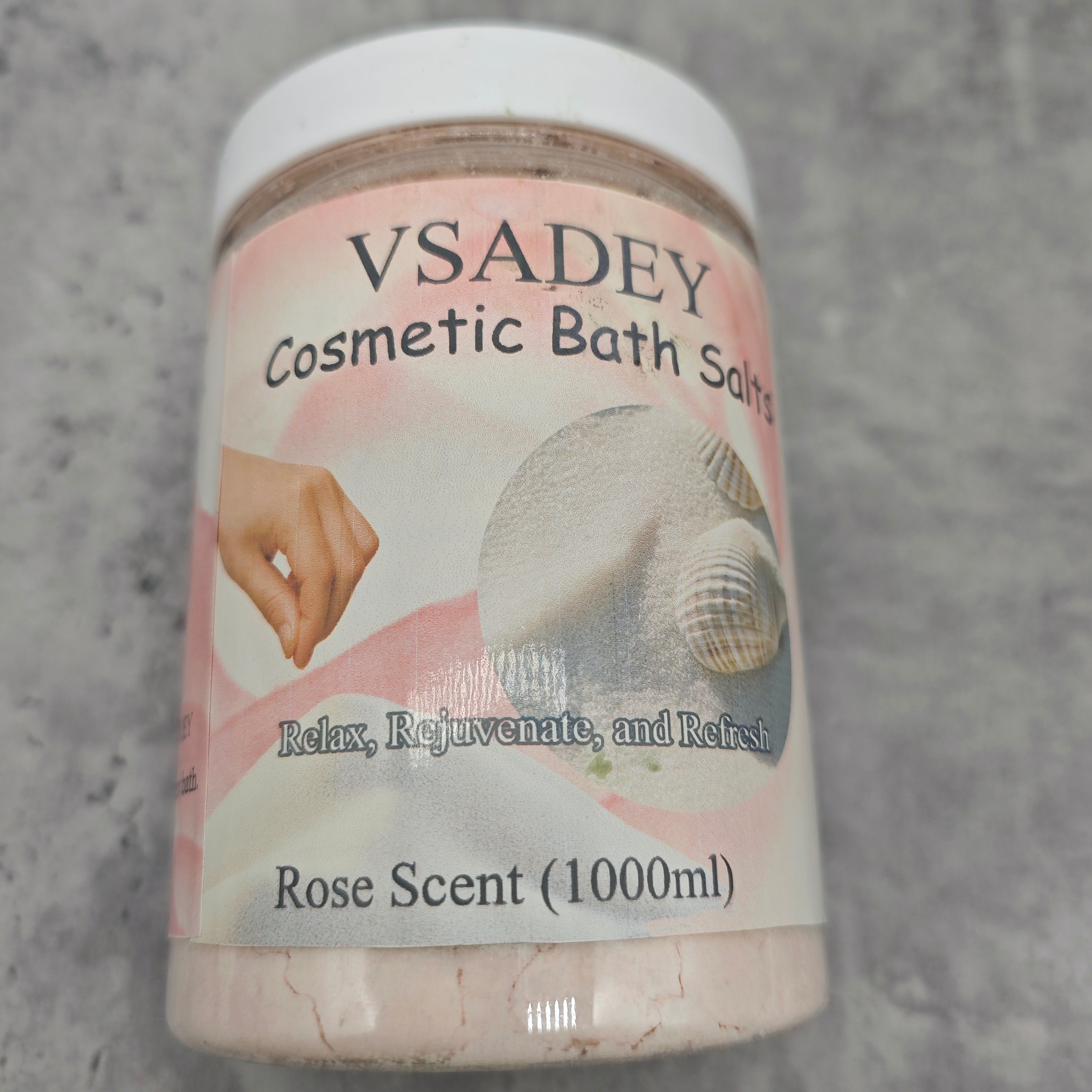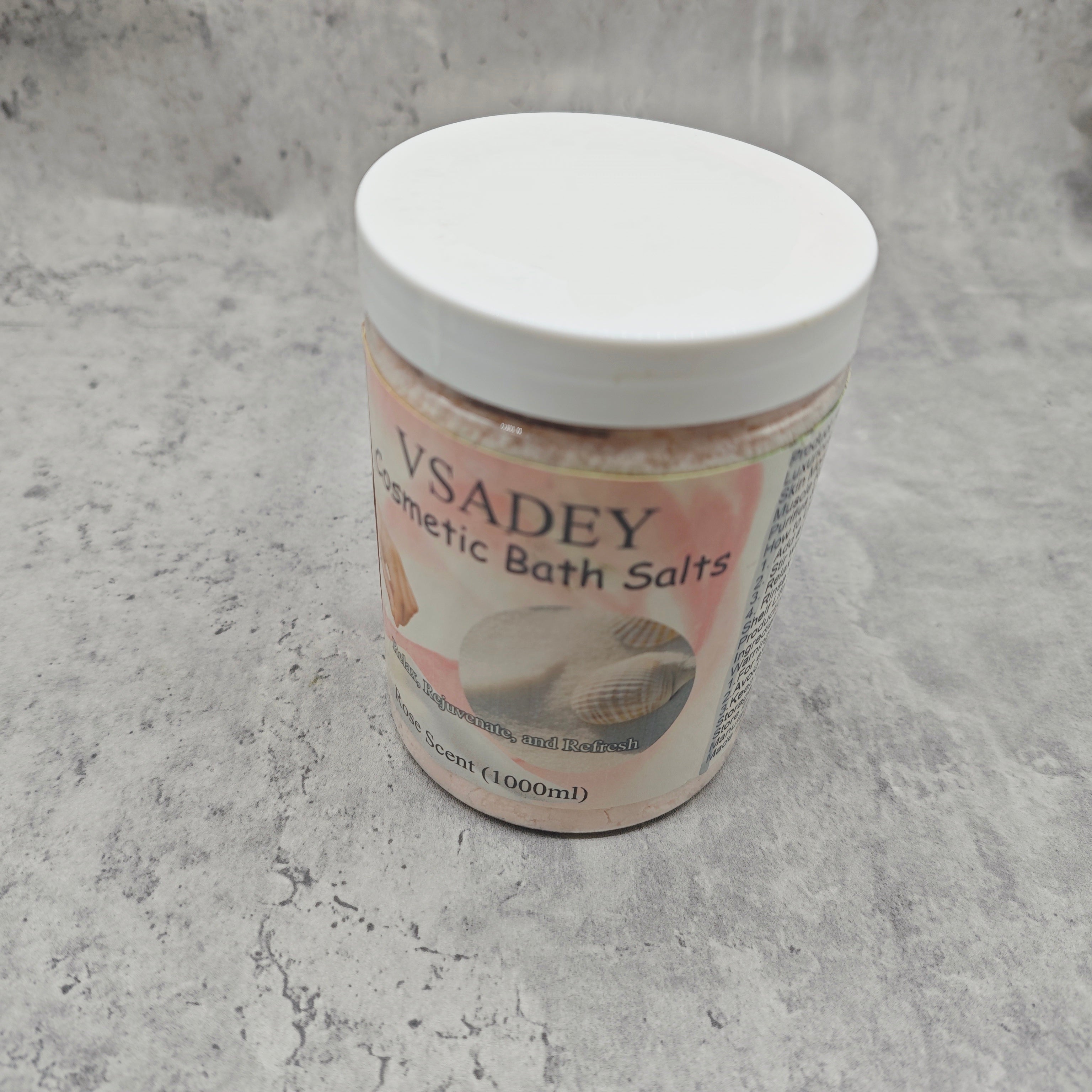 VSADEY Cosmetic Bath Salts - Rose Scent (1000ml), Relaxing & Moisturizing Bath Soak, Muscle Relaxation, Skin Hydration & Detoxifying Formula