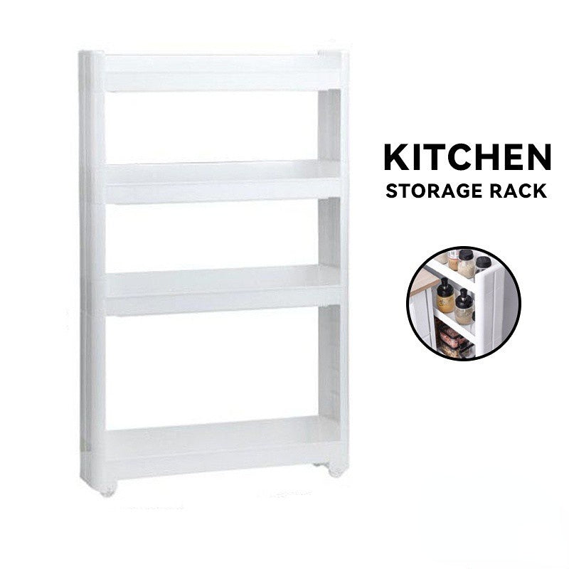 3 /4 Tier Local Kitchen Storage Rack Slide Movable Plastic Bathroom Slim Shelf W/ Wheels Space Saver Ready Stock